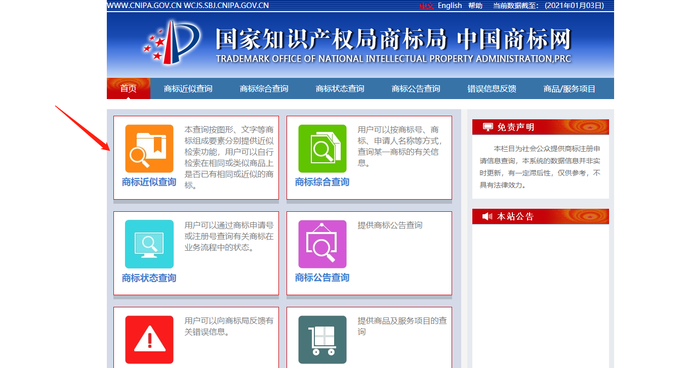 1、设计好商标后,进入商标局官网http://sbj.cnipa.gov.cn/sbcx/先检索商标。